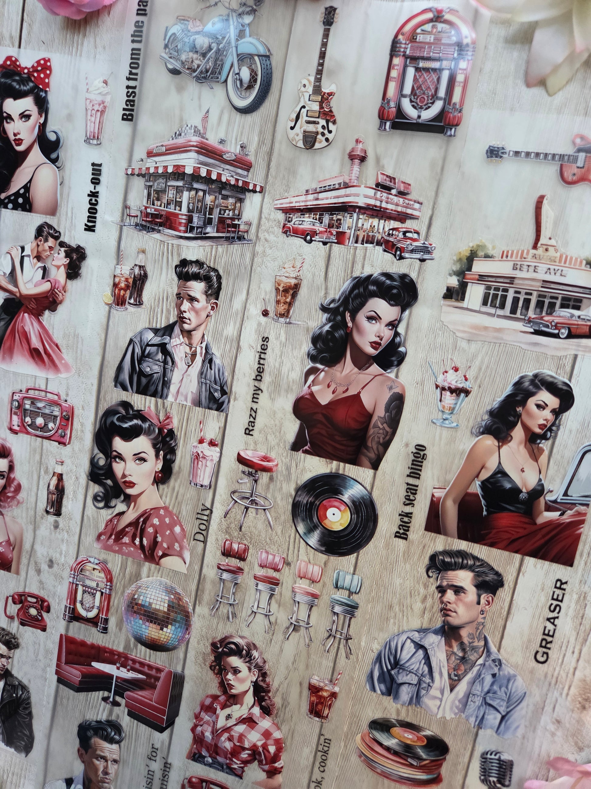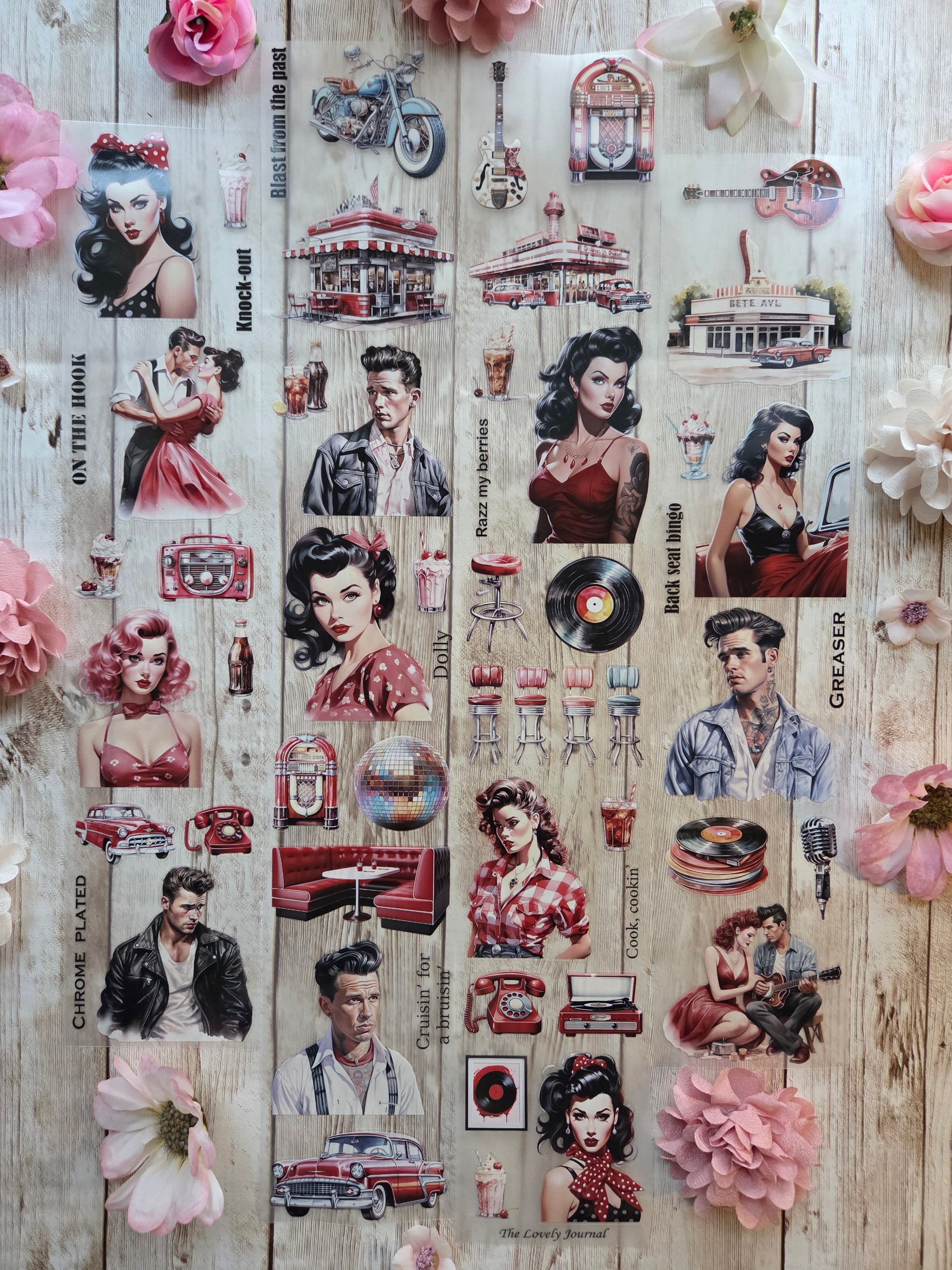 50s Fever PET tape sample loop features a curated selection of unique images. Perfect for a wide range of creative projects, including art journaling, scrapbooking, handmade greeting cards, mixed-media collage, and Artist Trading Cards (ATCs).