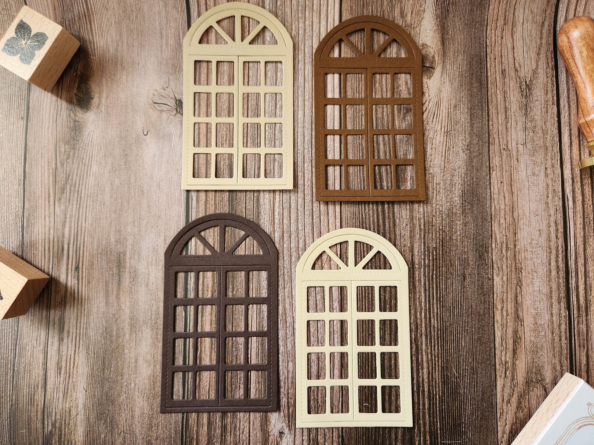 Lovely hand made window die cut with a beautiful arched design. Made from 65 lbs smooth cardstock paper. Use to make a variety of projects for your scrapbook, junk journal, and even greeting cards.