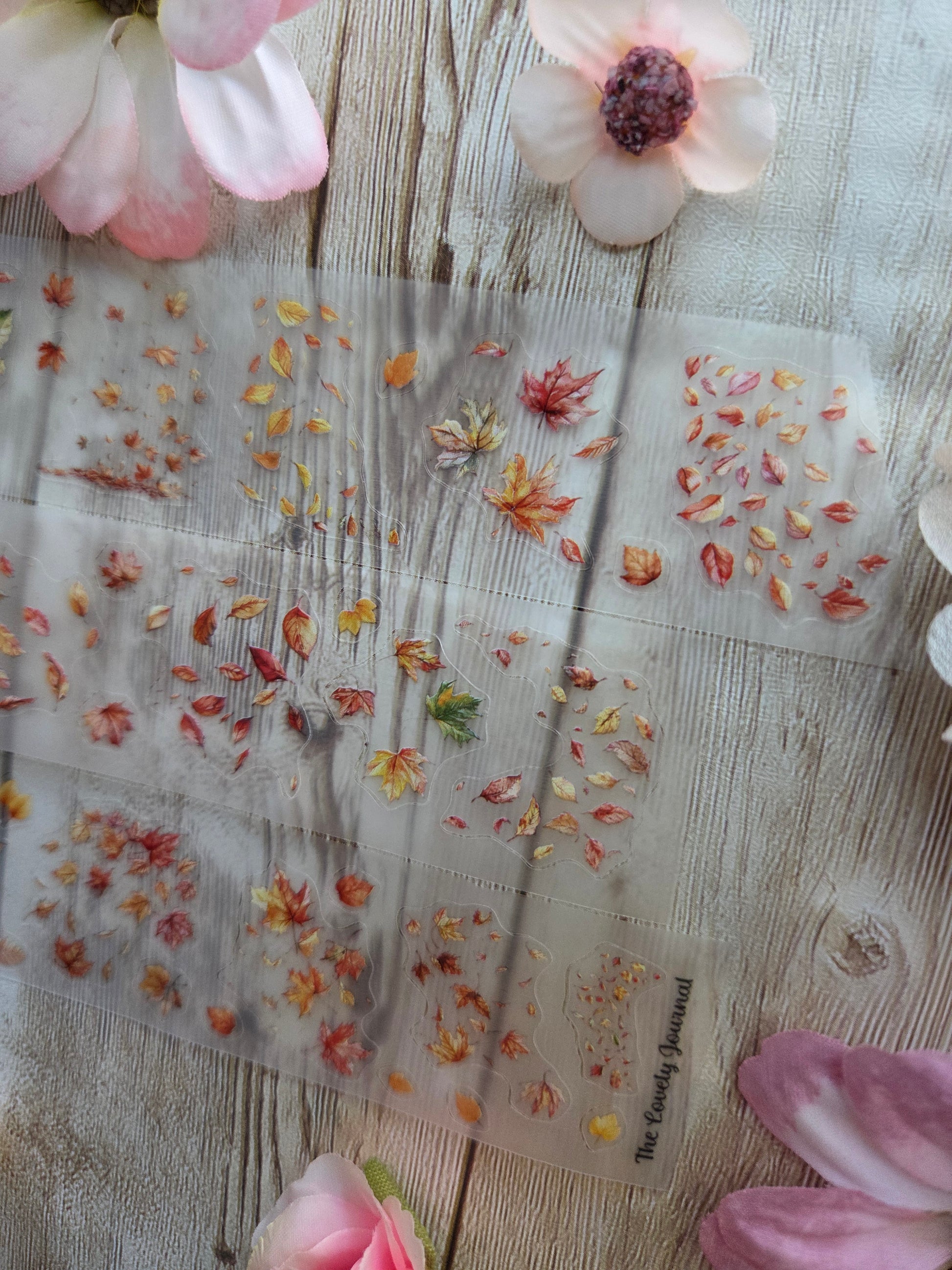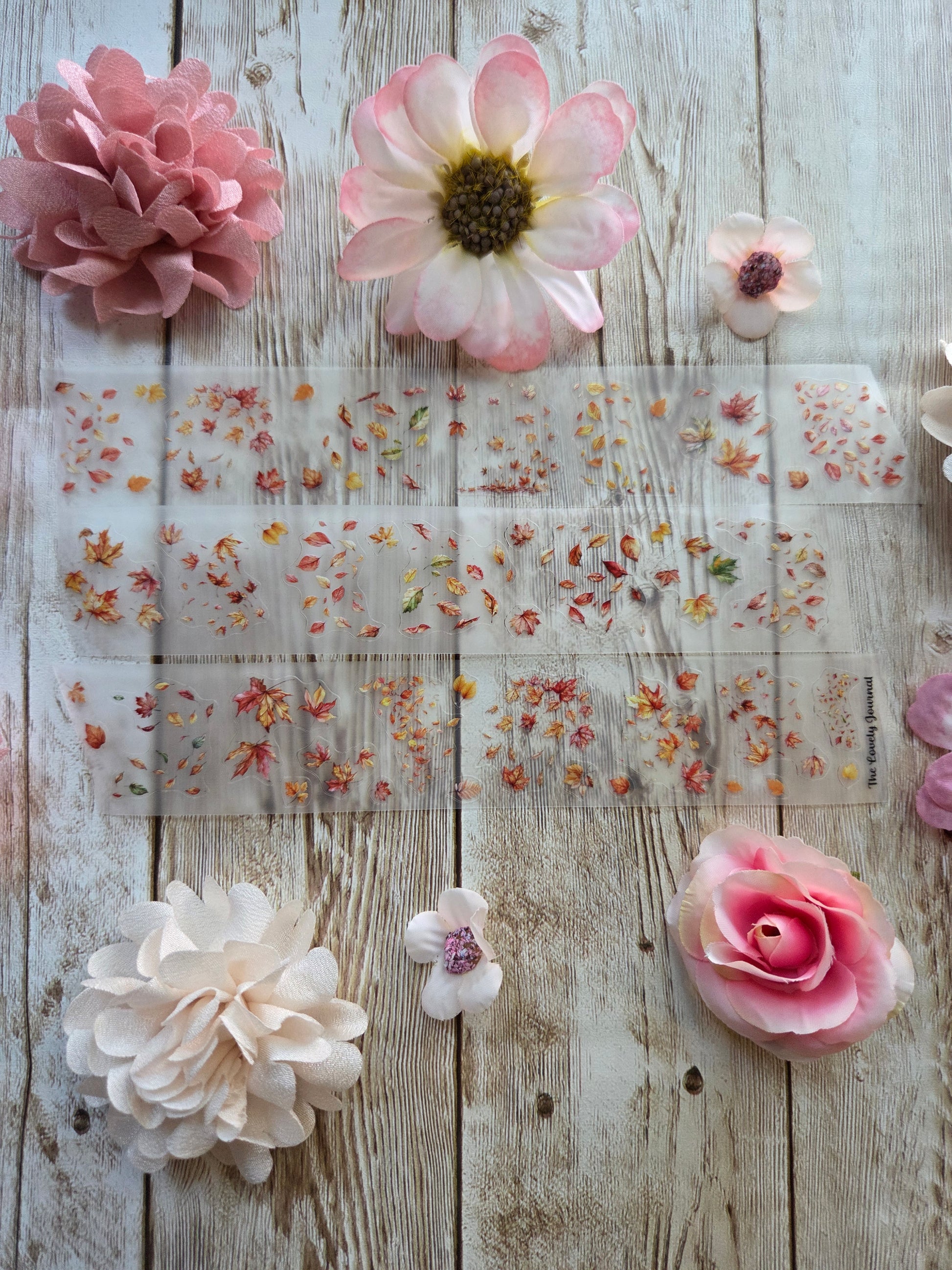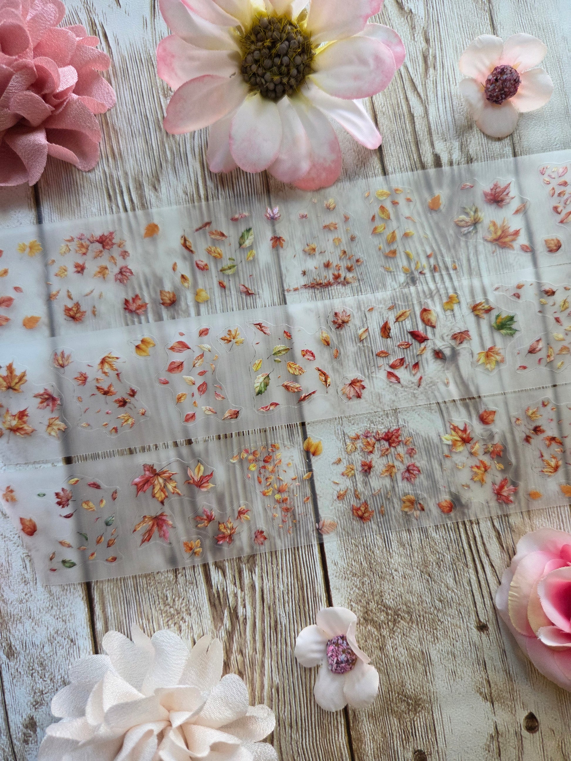 Autumn Leaves PET tape sample loop features a curated selection of unique images. Perfect for a wide range of creative projects, including art journaling, scrapbooking, handmade greeting cards, mixed-media collage, and Artist Trading Cards (ATCs).