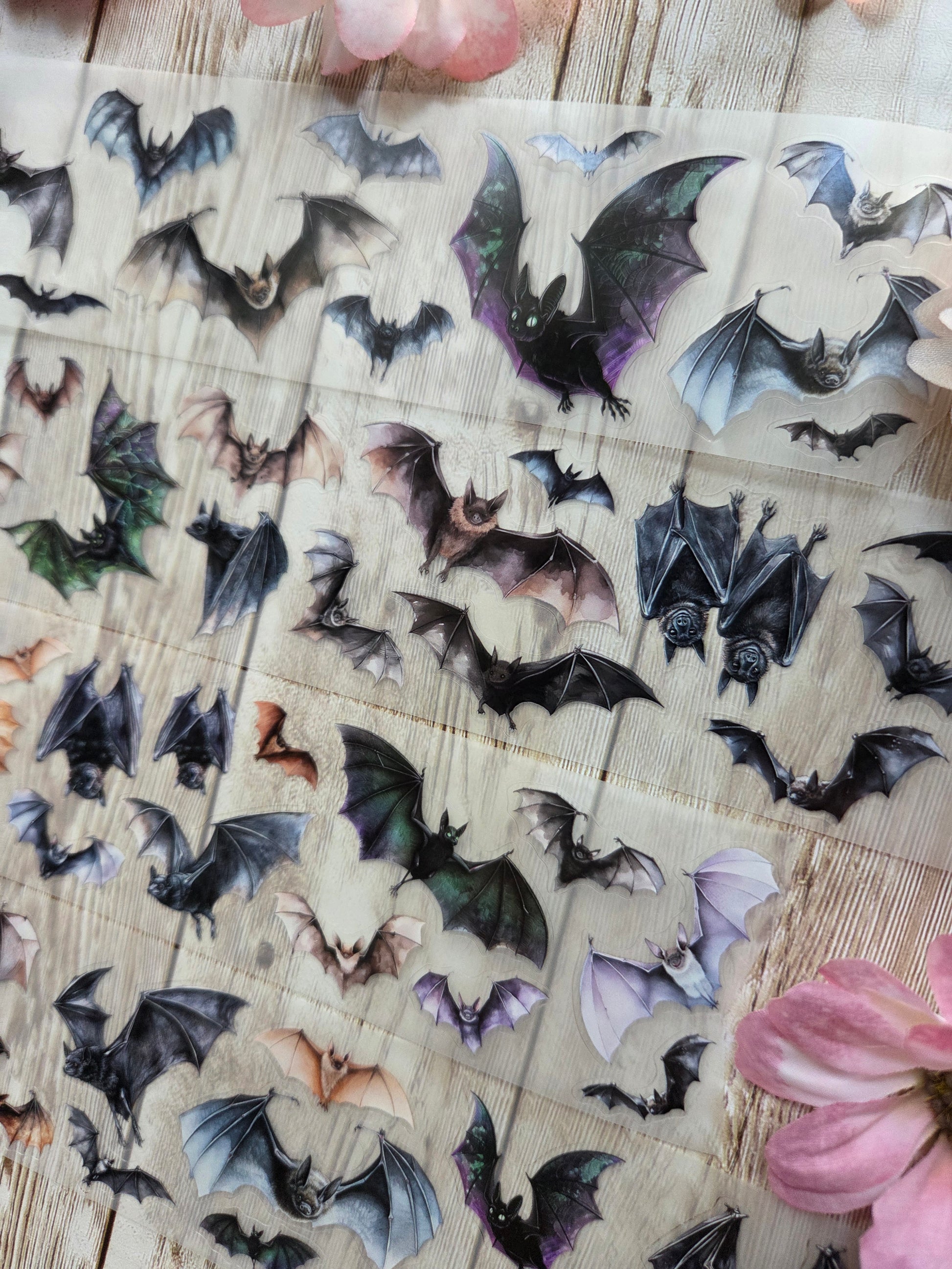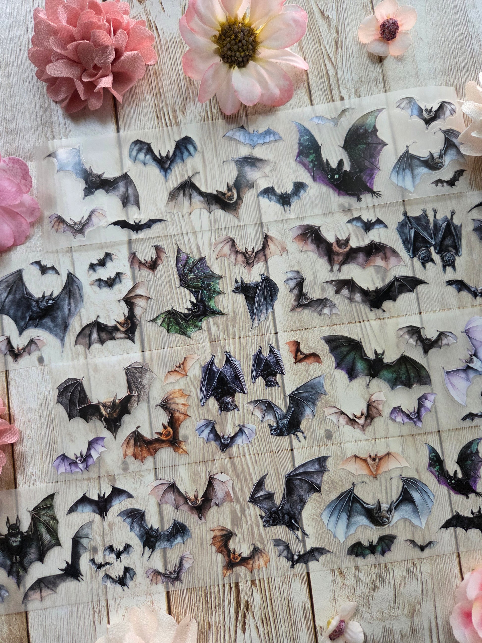 Bats PET tape sample loop features a curated selection of unique images. Perfect for a wide range of creative projects, including art journaling, scrapbooking, handmade greeting cards, mixed-media collage, and Artist Trading Cards (ATCs).