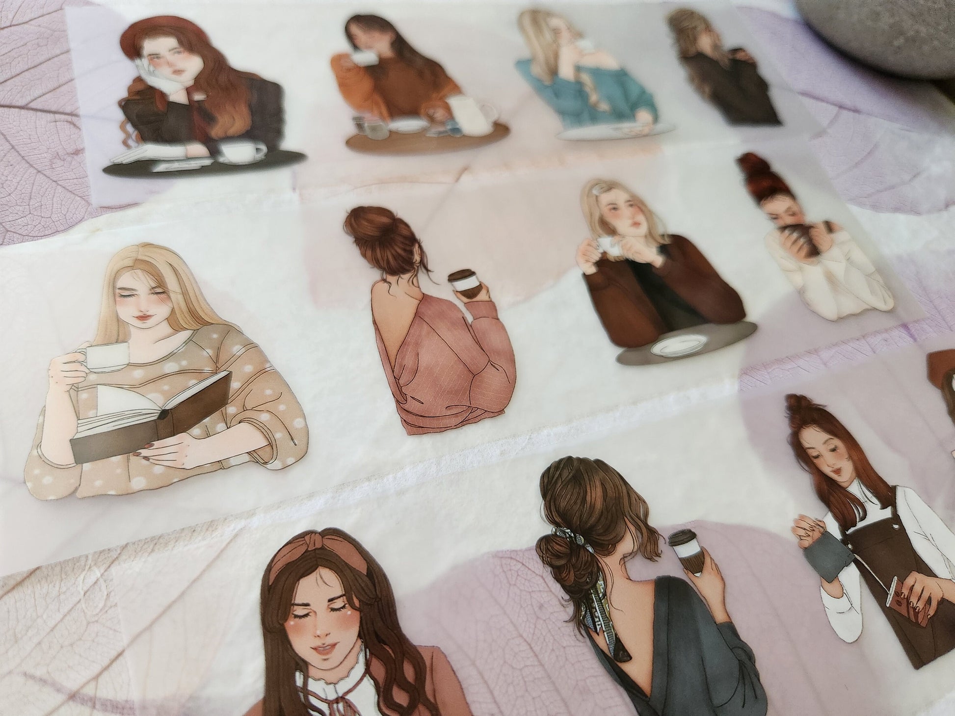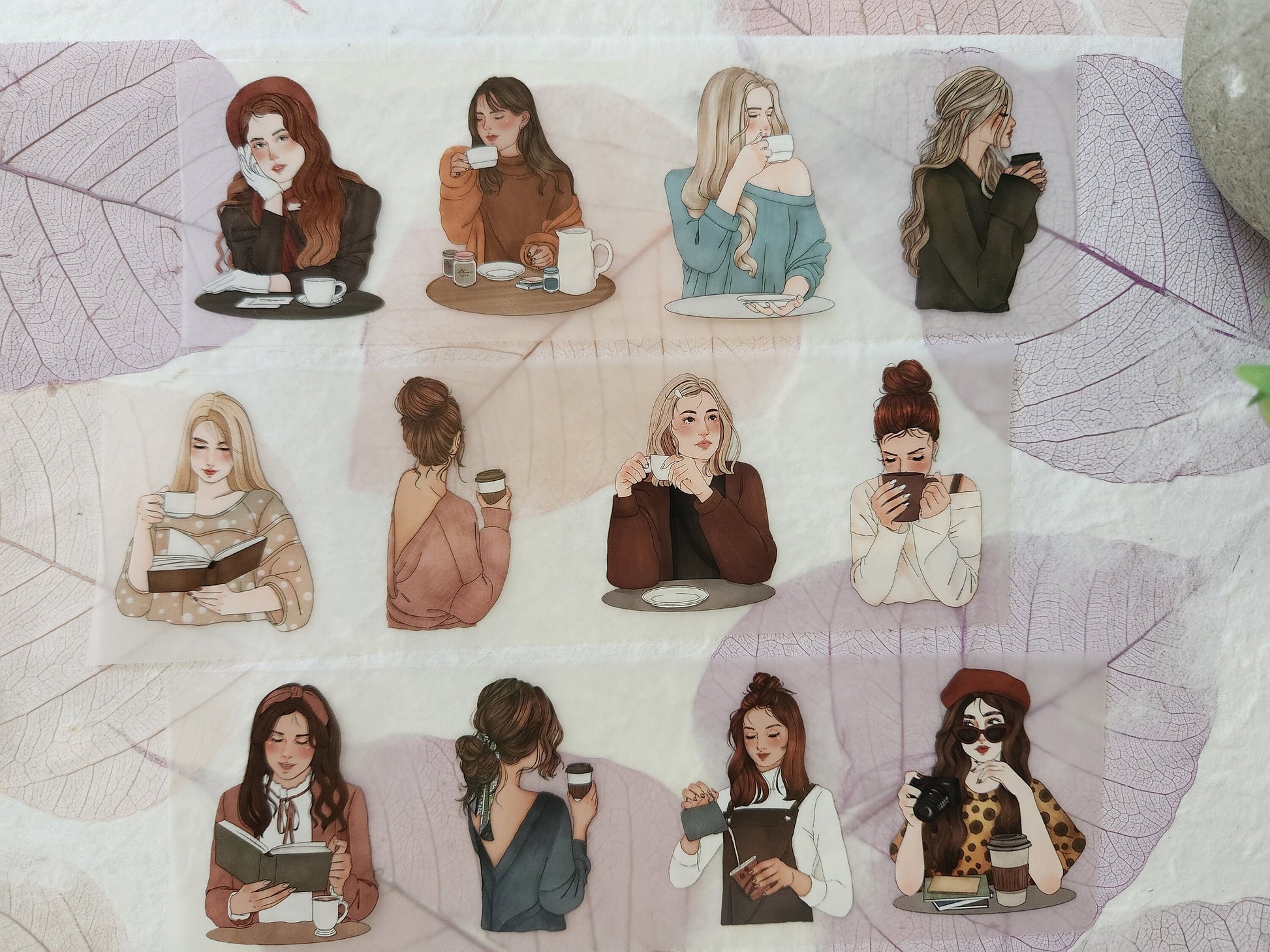 **The girls in this sample are approx 2in each, if you'd prefer larger size girls please see my other listing for Coffee Lovers stickers.