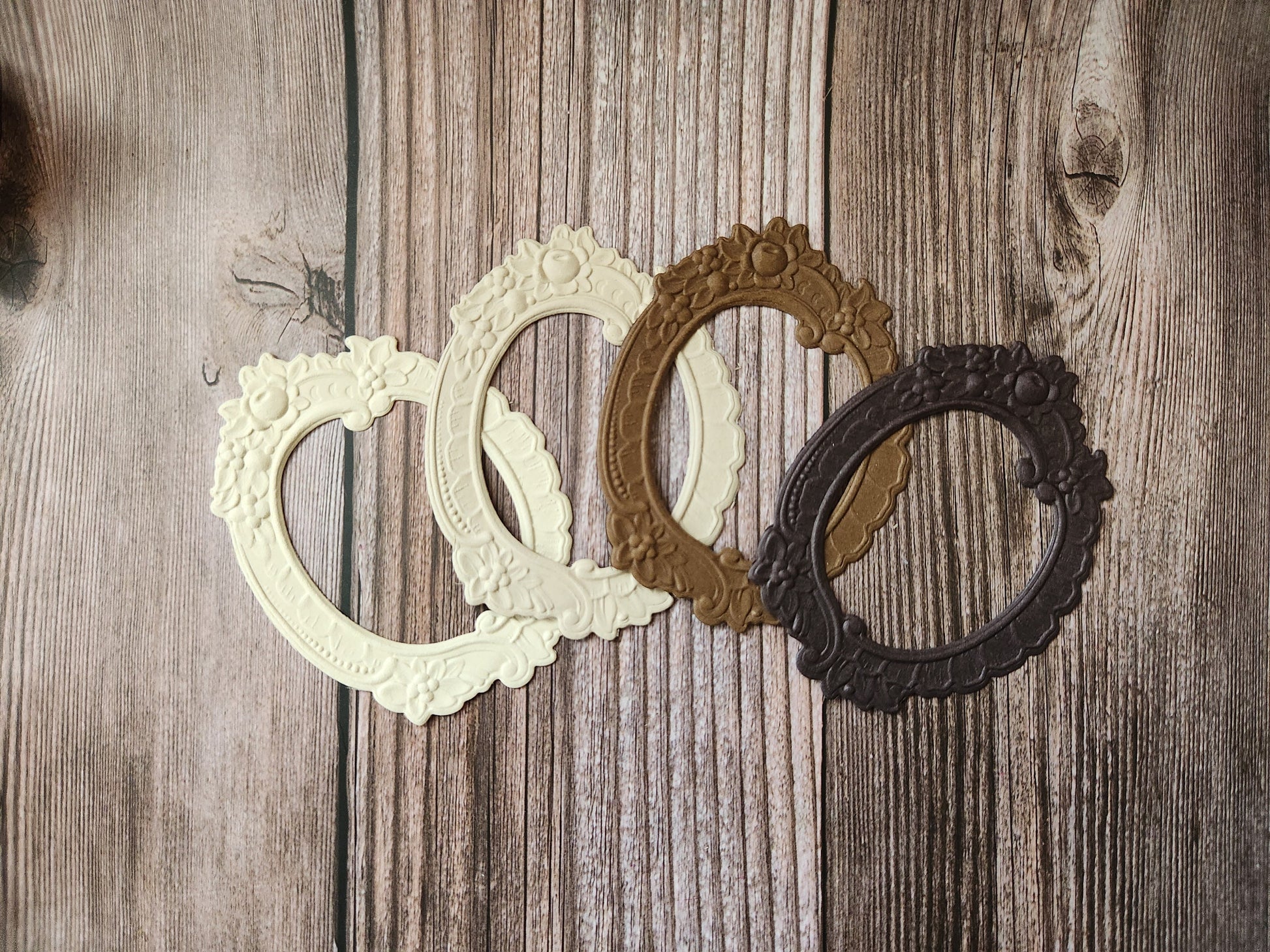 Lovely hand made embossed oval die cuts with a beautiful flower design to make a variety of creative projects for your scrapbook, junk journal, greeting cards, etc.