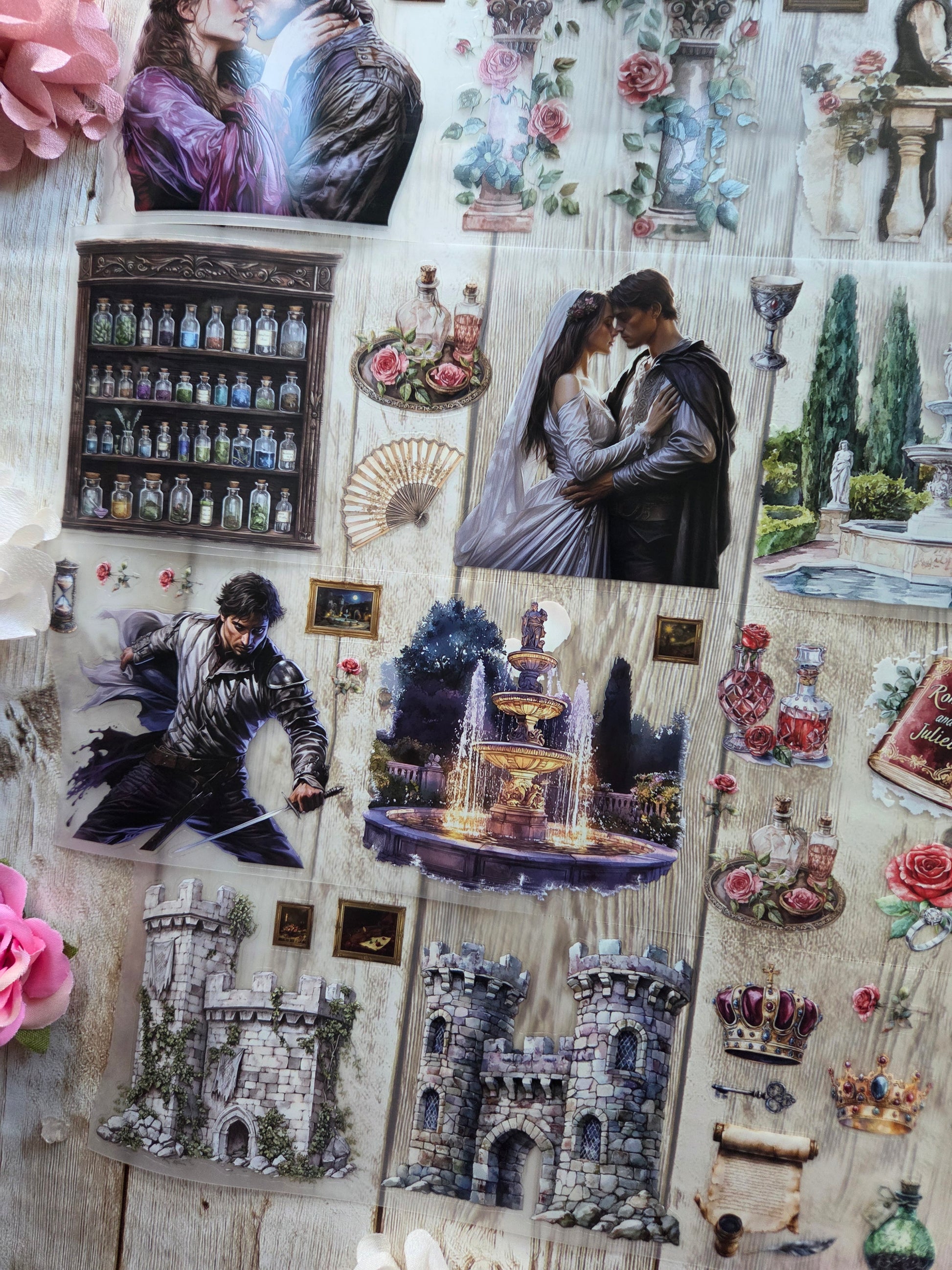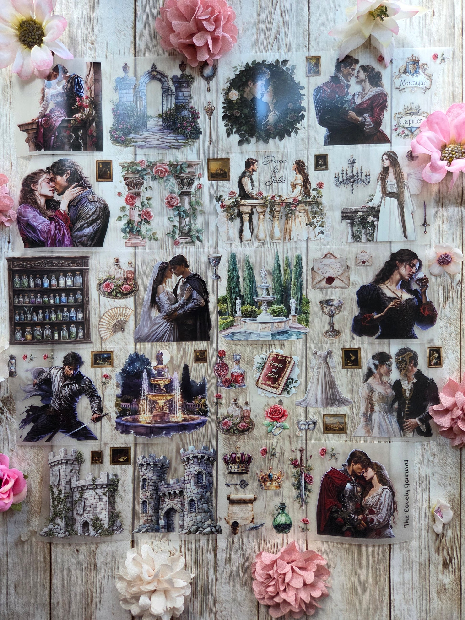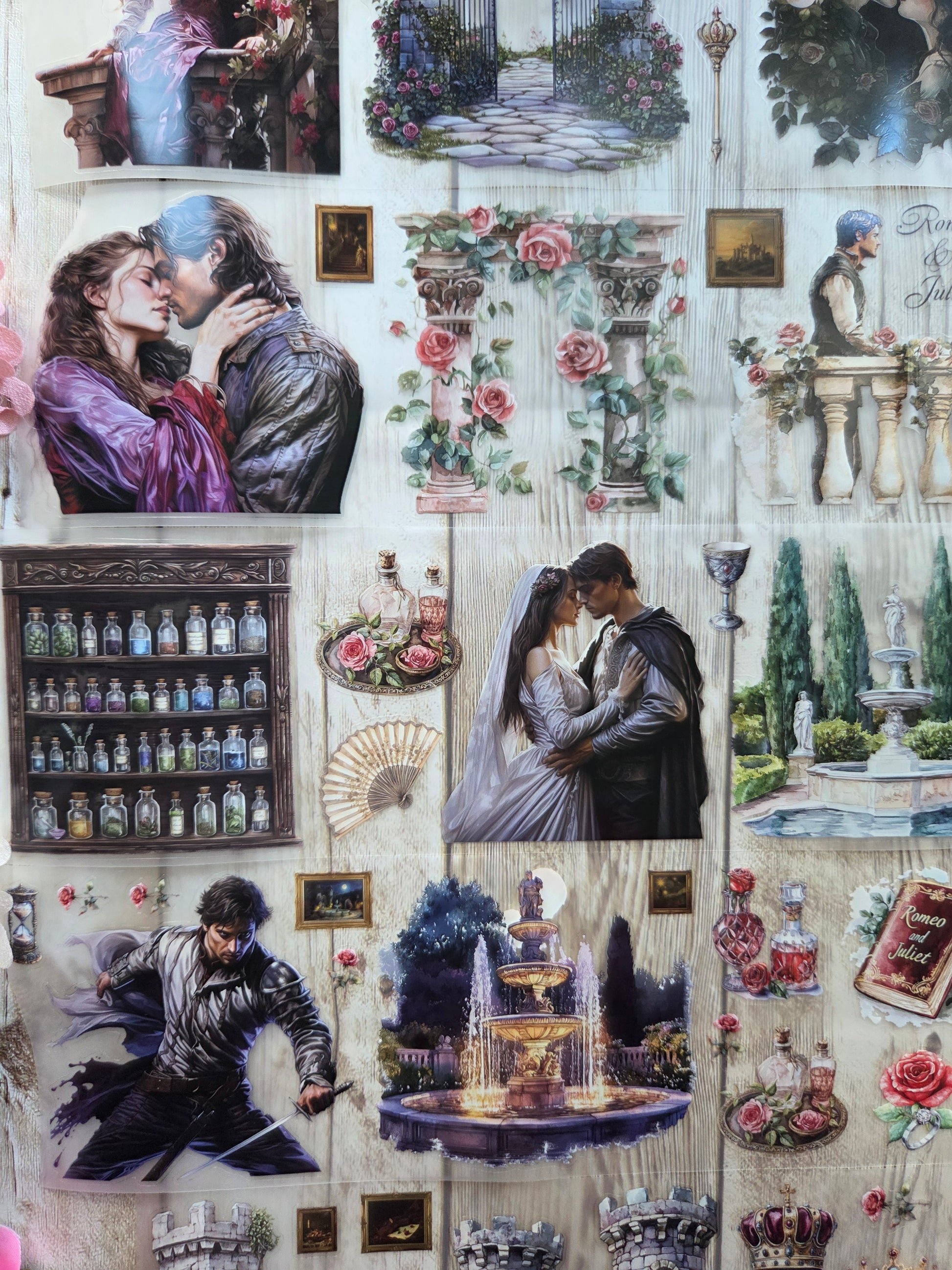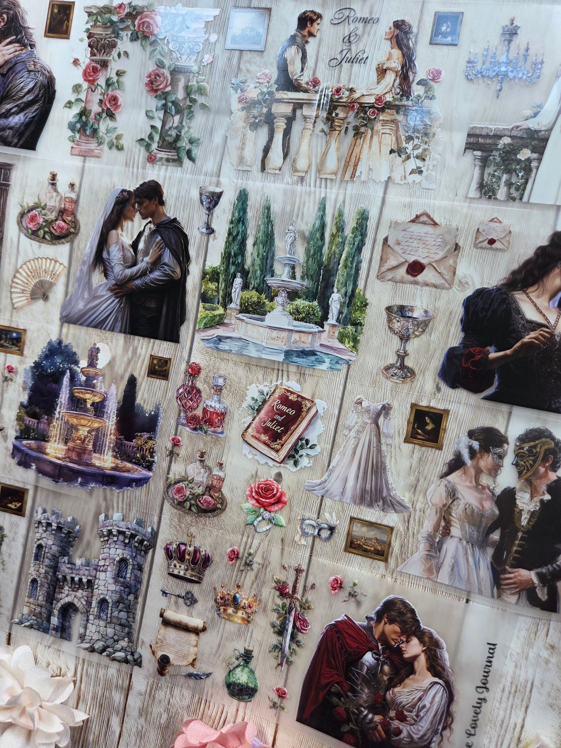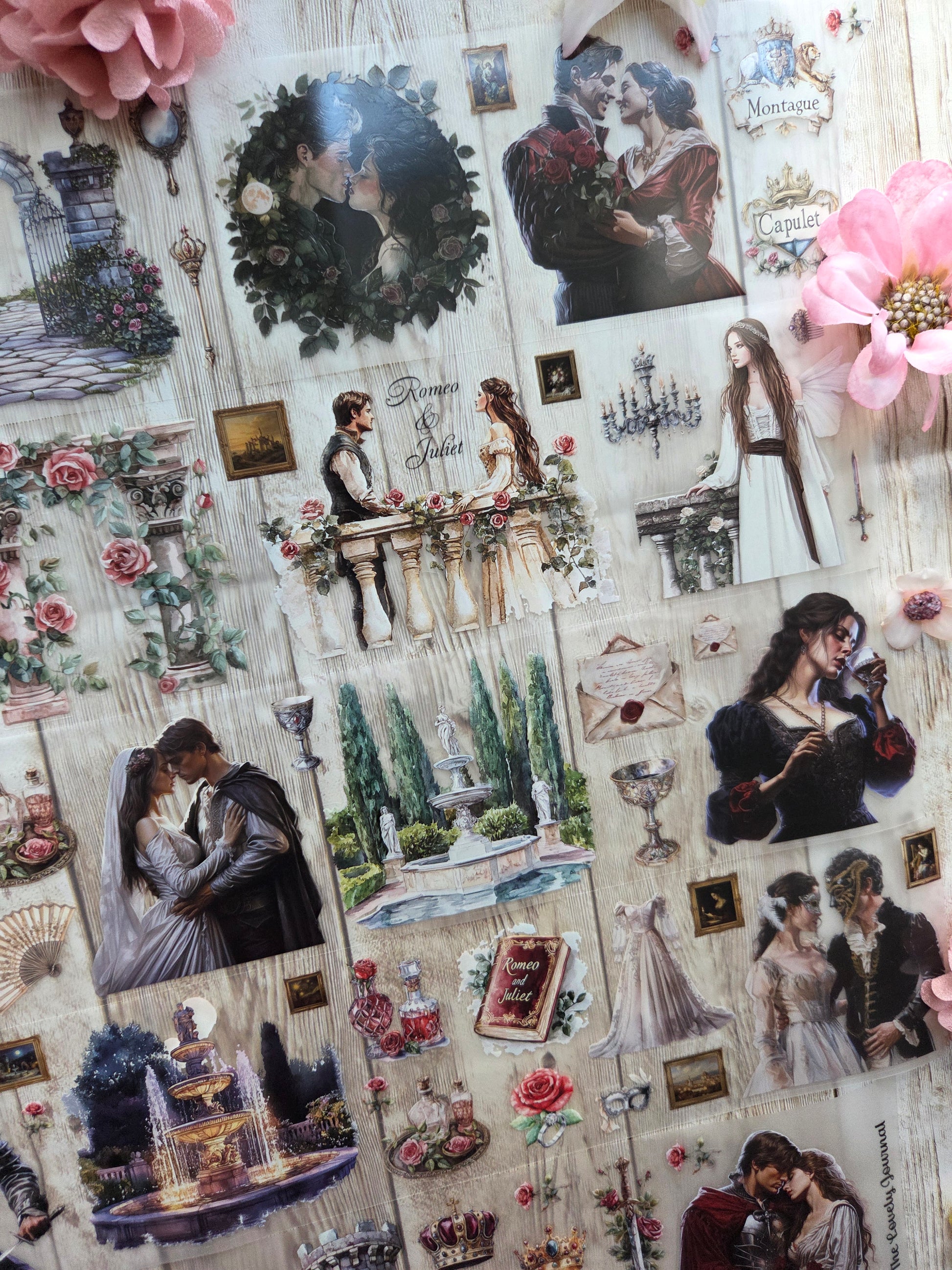 Romeo and juliet PET tape sample loop features a curated selection of unique images. Perfect for a wide range of creative projects, including art journaling, scrapbooking, handmade greeting cards, mixed-media collage, and Artist Trading Cards (ATCs).