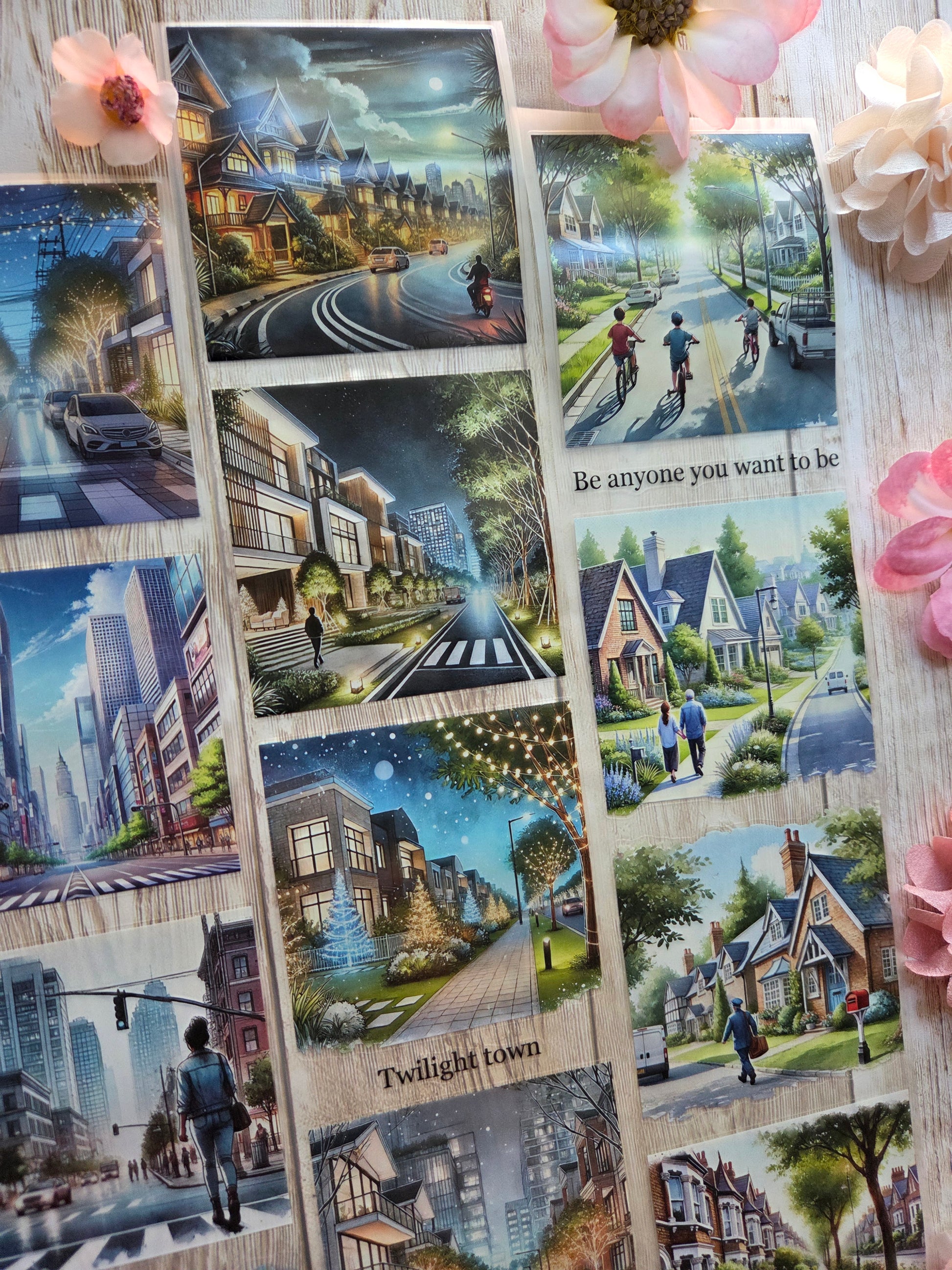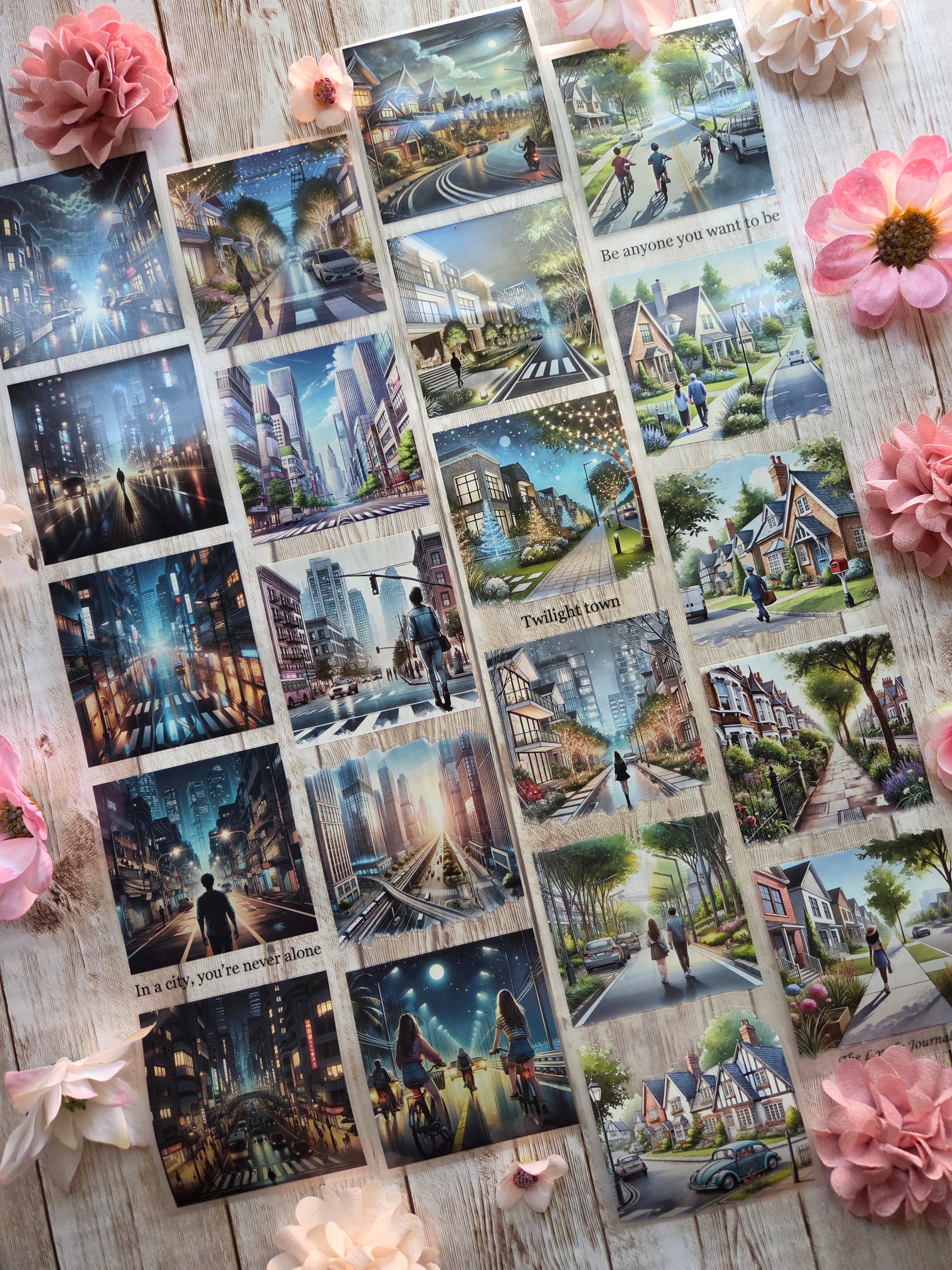 Streets PET tape sample loop features a curated selection of unique images. Perfect for a wide range of creative projects, including art journaling, scrapbooking, handmade greeting cards, mixed-media collage, and Artist Trading Cards (ATCs).