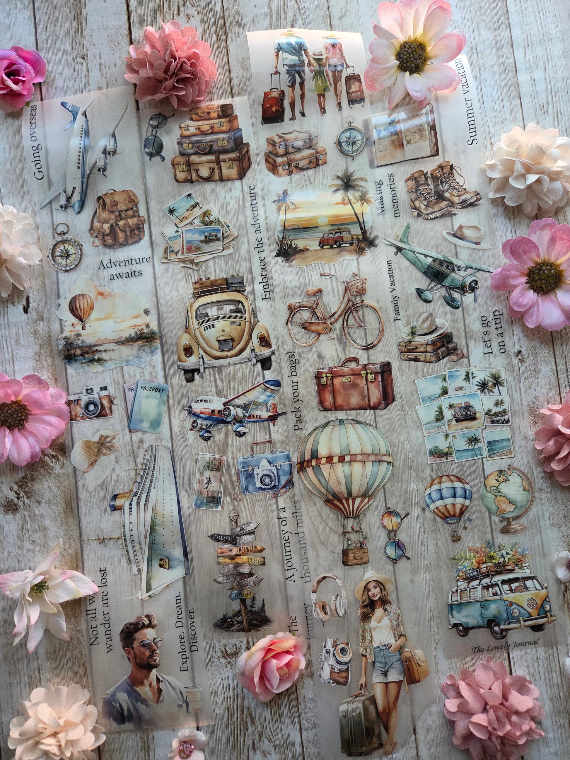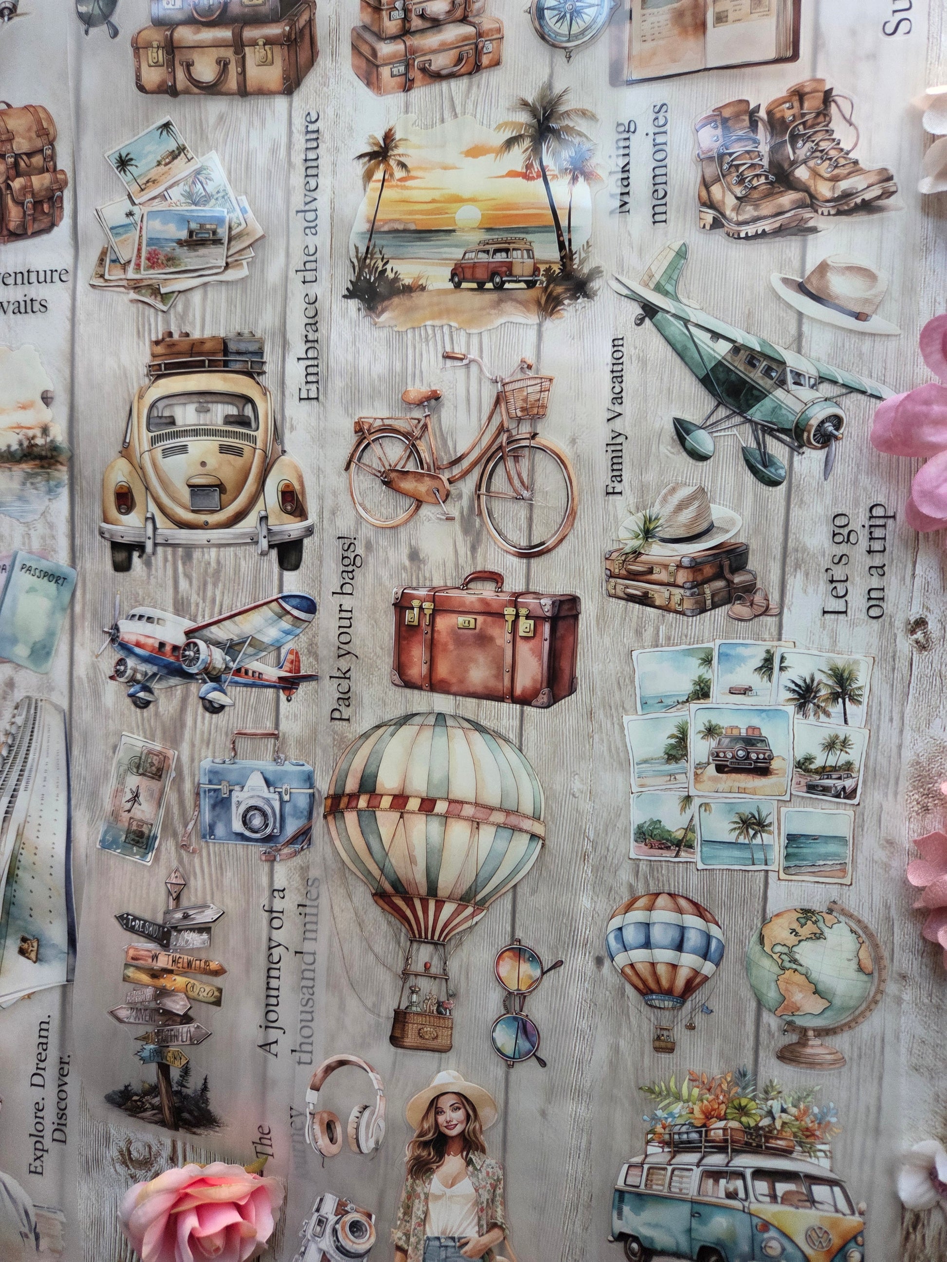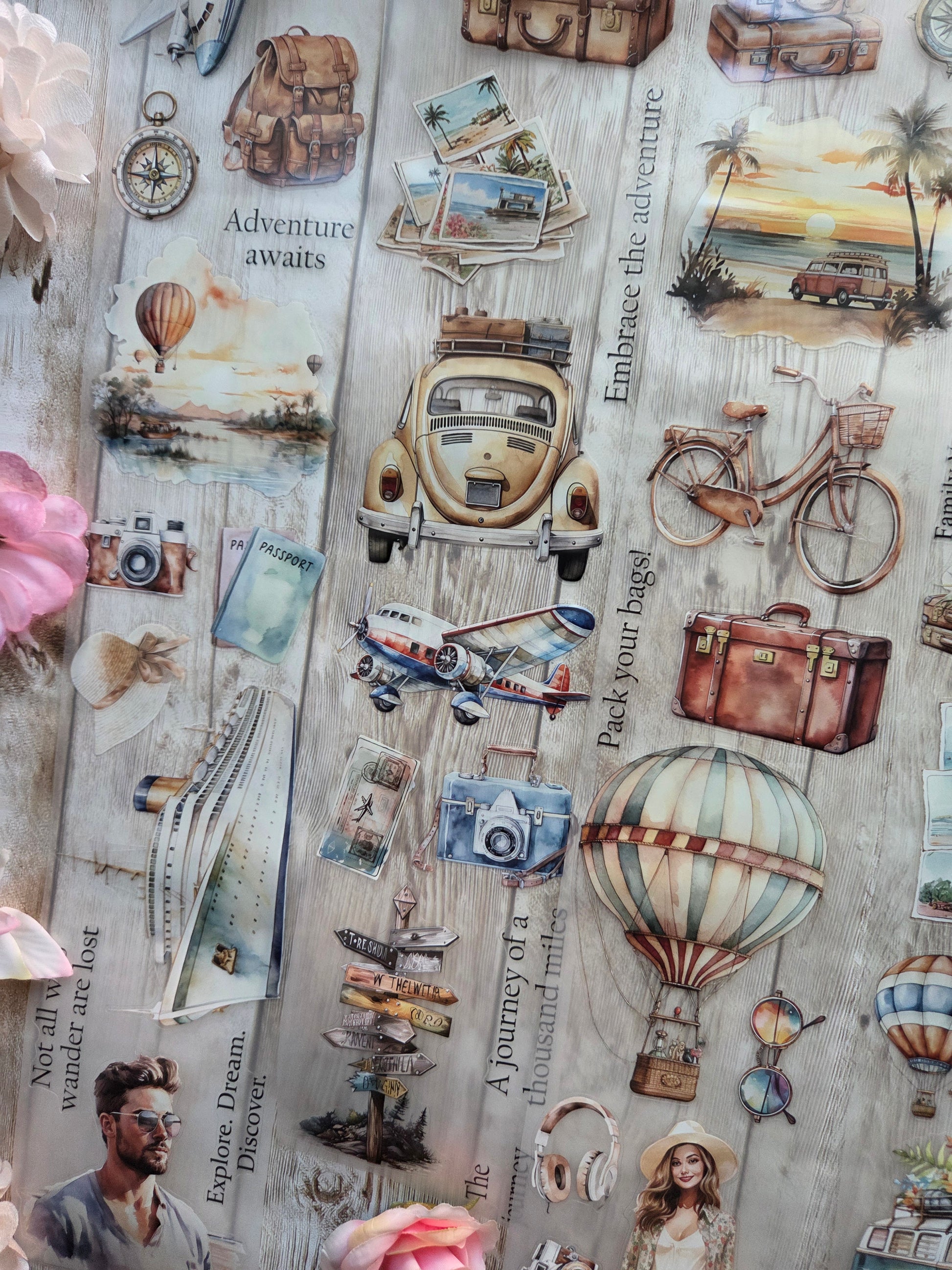 Travel PET tape sample loop features a curated selection of unique images. Perfect for a wide range of creative projects, including art journaling, scrapbooking, handmade greeting cards, mixed-media collage, and Artist Trading Cards (ATCs).
