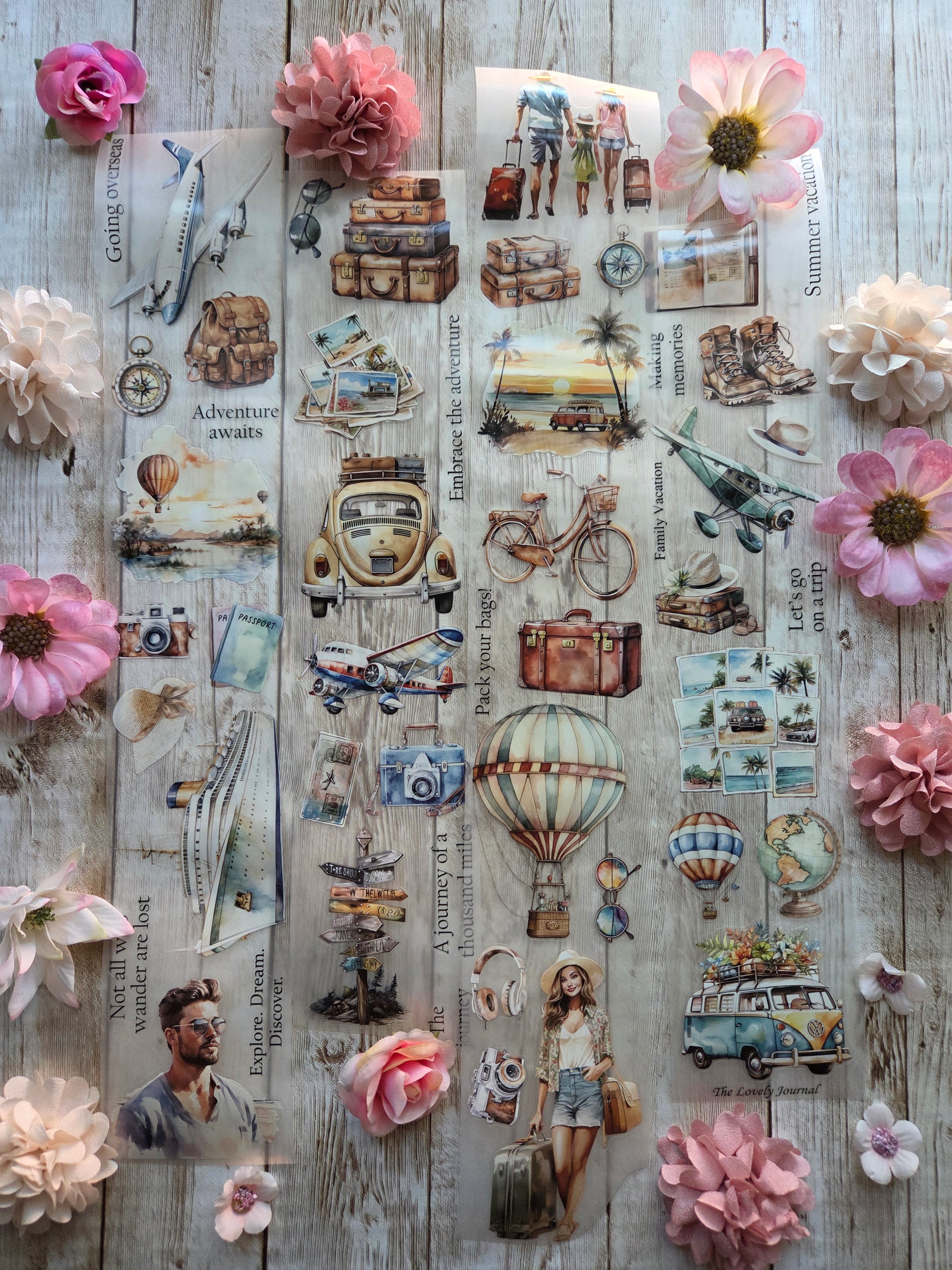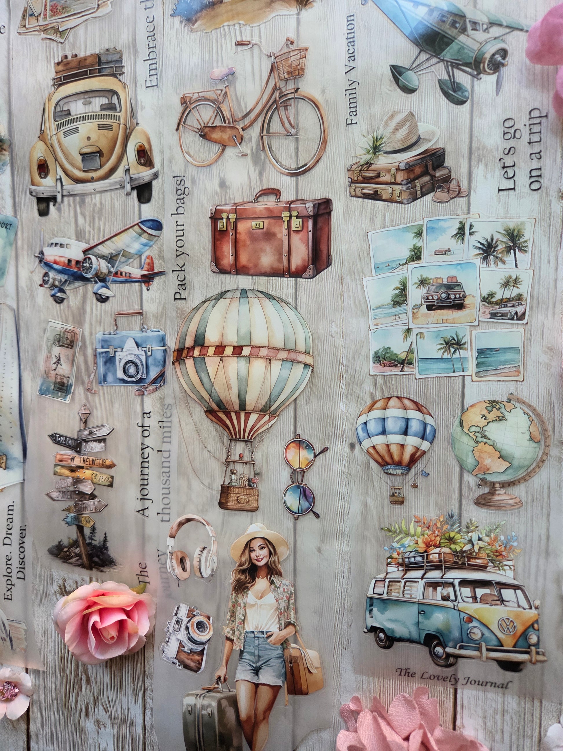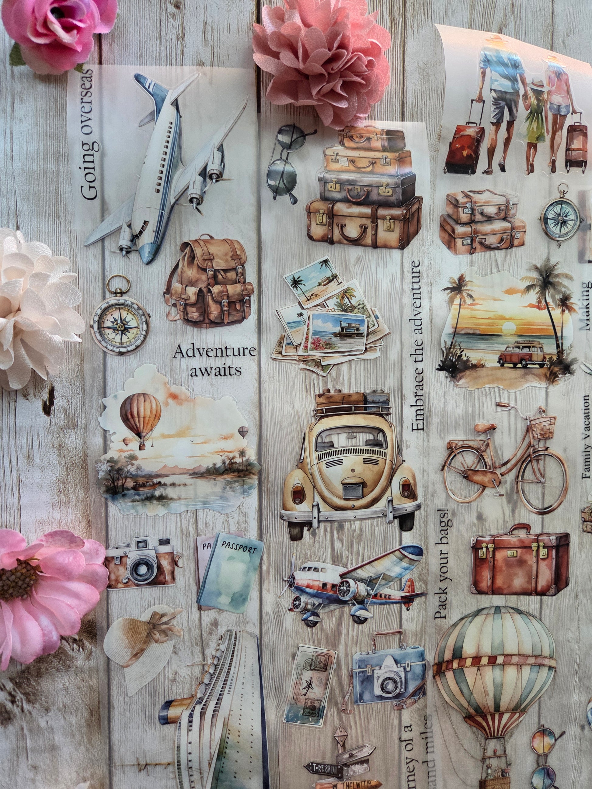 Travel PET tape sample loop features a curated selection of unique images. Perfect for a wide range of creative projects, including art journaling, scrapbooking, handmade greeting cards, mixed-media collage, and Artist Trading Cards (ATCs).