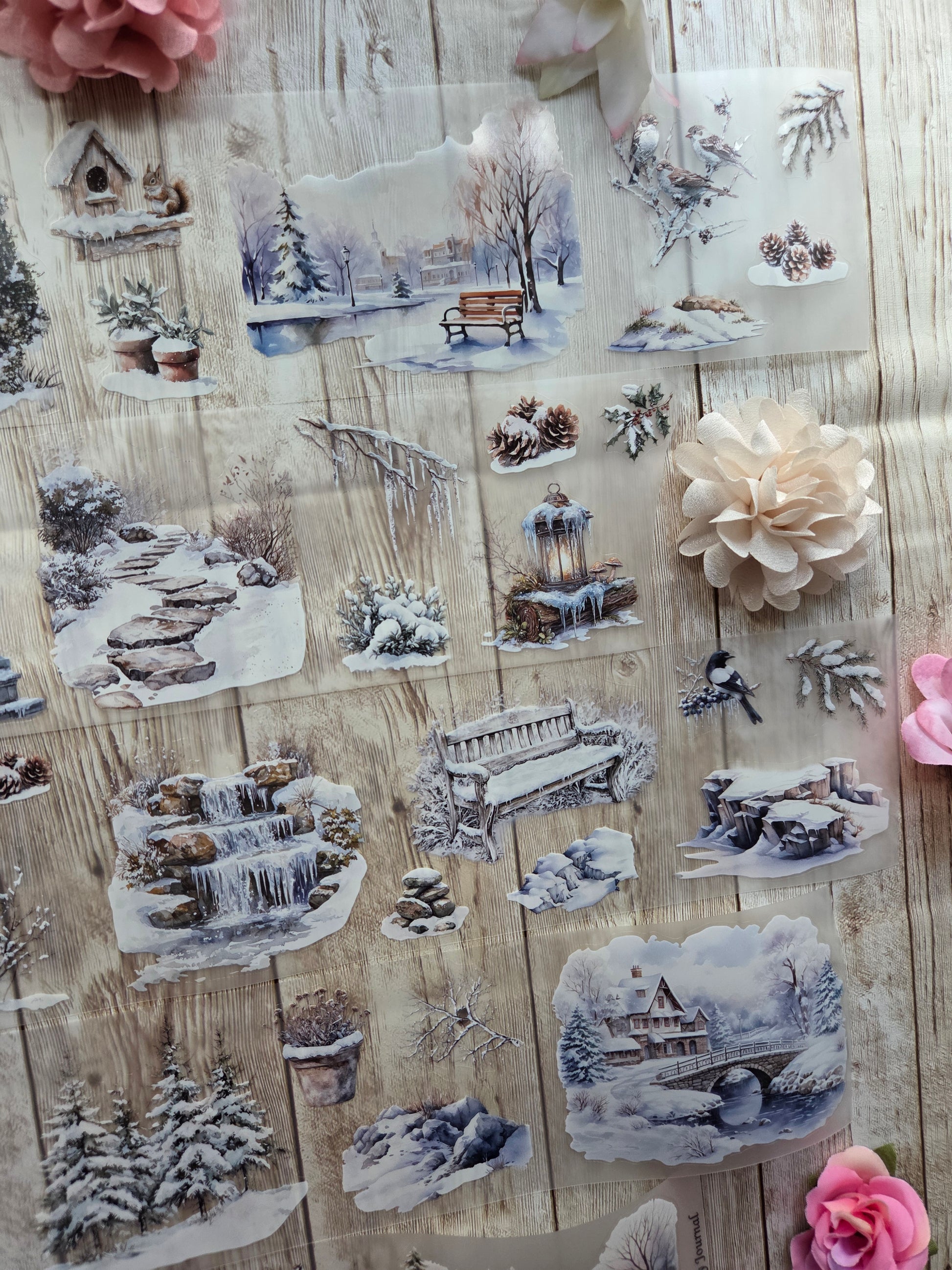 Winter forest PET tape sample loop features a curated selection of unique images. Perfect for a wide range of creative projects, including art journaling, scrapbooking, handmade greeting cards, mixed-media collage, and Artist Trading Cards (ATCs).